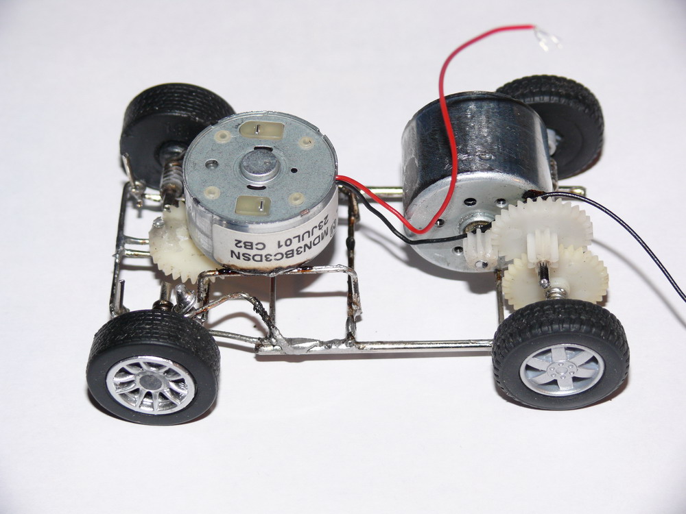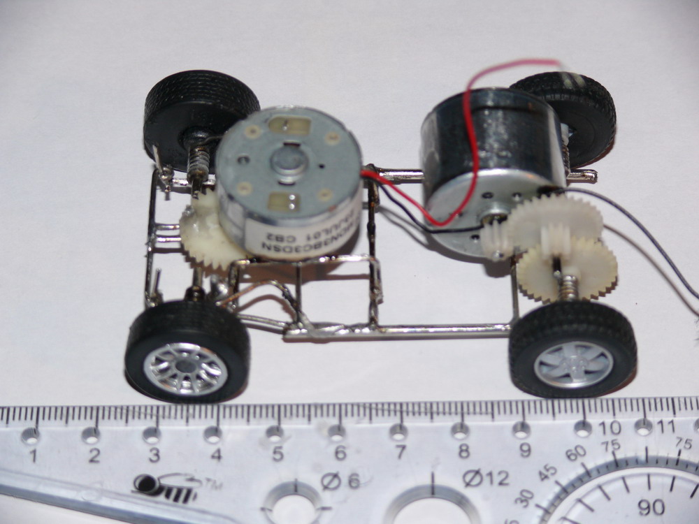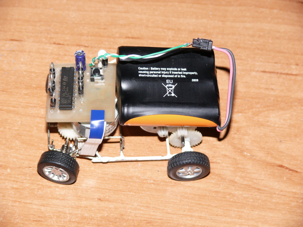 маханький автомобильчик.Напаял к нему схемку Мега8 + Л293Е ,а Тсопы, радио управление братан приделает
