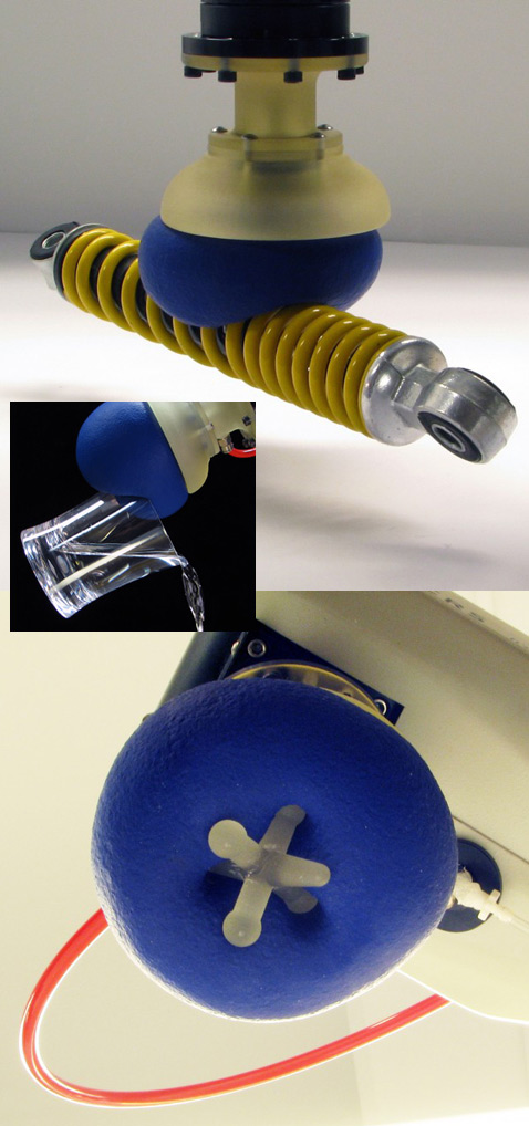 я так полагаю что надо комбинировать в латексную перчатку вставлять кисть робота и насыпать туда кофе обхватывать управляемыми пальцами(усилие минимальное, лишь бы мог шевелить пальцами)предмет, откачивать воздух и фиксировать предмет в жёстком захвате. будет очень мягкая рука робота которую можно пожать и вобще трогать или допустим робот сможет человека трогать аккуратно кисть в любой момент могущая становится твёрдой. для ударов например, или тяжёлой работы молотком.