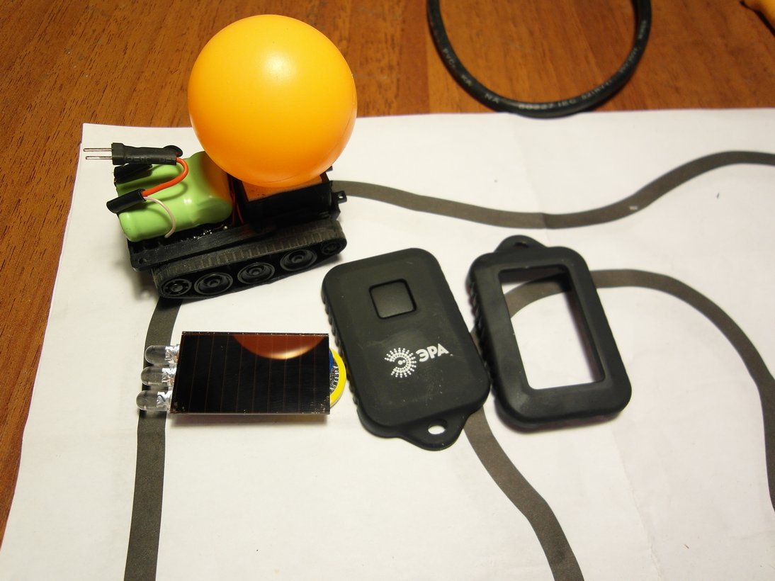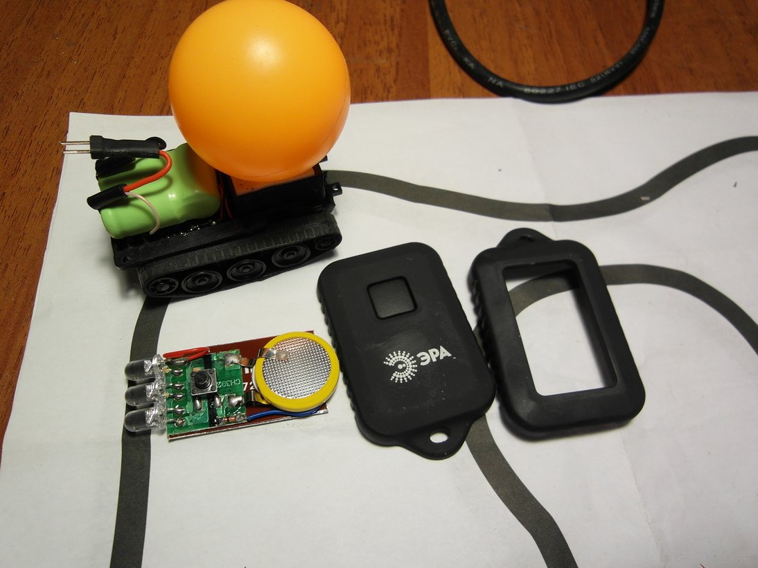 Оборудование каждого - микрофон, микродинамик, ик-передатчик, ик-приёмник, датчики цвета поверхности, по возможности ИК-бамперы (может быть в виде тех же датчиков цвета поверхности направленных в стороны, светодиоды индикации, пара-тройка кнопок, на борту МК - какой-нибудь ATMega168, движки - микродвигатели с редукторами размером 24х12х10мм, аккум - литий от сотового или 3 баночки NiMH, отдельная платка USB-UART моста, чтобы сэкономить место на роботе + снизить цену 1 робота, потому что их будут брать скорее всего парами.
