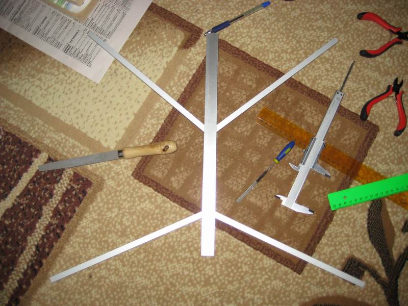 Размер я прикидывал на глаз в акаде, такой чтобы все уместилось и в принципе со всеми допущениями расчитывал на то что конструкция получится не тяжелее 2,5 кг вместе с аккумуляторами и электроникой. Собственно так и получилось. Только теперь незнаю что выбрать, чем больше вес тем меньше время полета, но хуже стабильность при сильном ветре.
