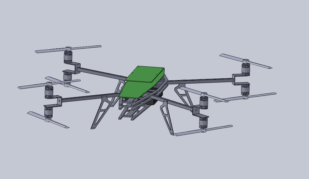 Размер я прикидывал на глаз в акаде, такой чтобы все уместилось и в принципе со всеми допущениями расчитывал на то что конструкция получится не тяжелее 2,5 кг вместе с аккумуляторами и электроникой. Собственно так и получилось. Только теперь незнаю что выбрать, чем больше вес тем меньше время полета, но хуже стабильность при сильном ветре.