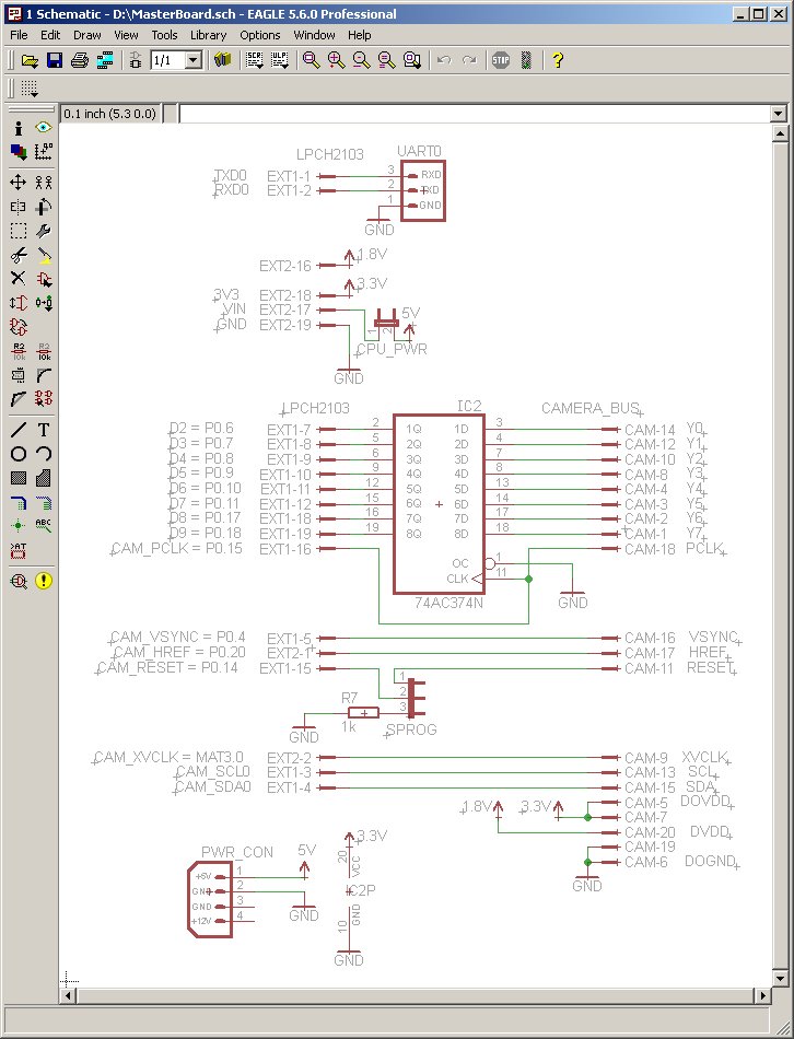 Распиновка выводов с камеры на 0.5mm pitch connector ("гибкая лента") приведена в Doc 04, а схема самой платы, соединяющей камеру с интерфейсным разъемом в Doc 03. И, разумеется, тут тоже ошибки. На самом деле, все нормально, пины Y7-0 подключены к выводам камеры D9-2 соответственно. Заметьте, что D1-0 не выведены вообще.