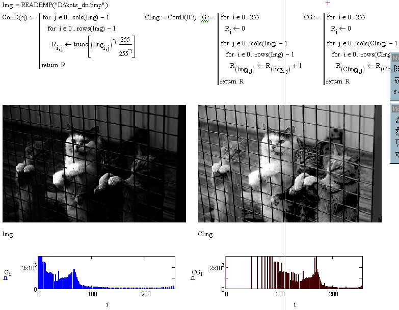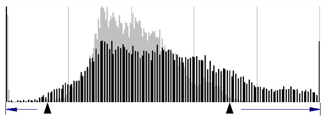 Исходная (серая) и скорректированная (черная) гистограммы: