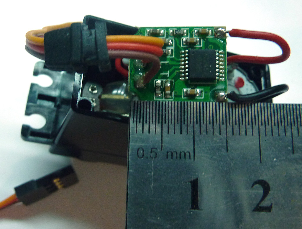 мотор с виду, как в mg995, а электроника как в sg90 (там всё тоже самое, только плата ещё меньше и нет пары доп. деталек в обвесе).