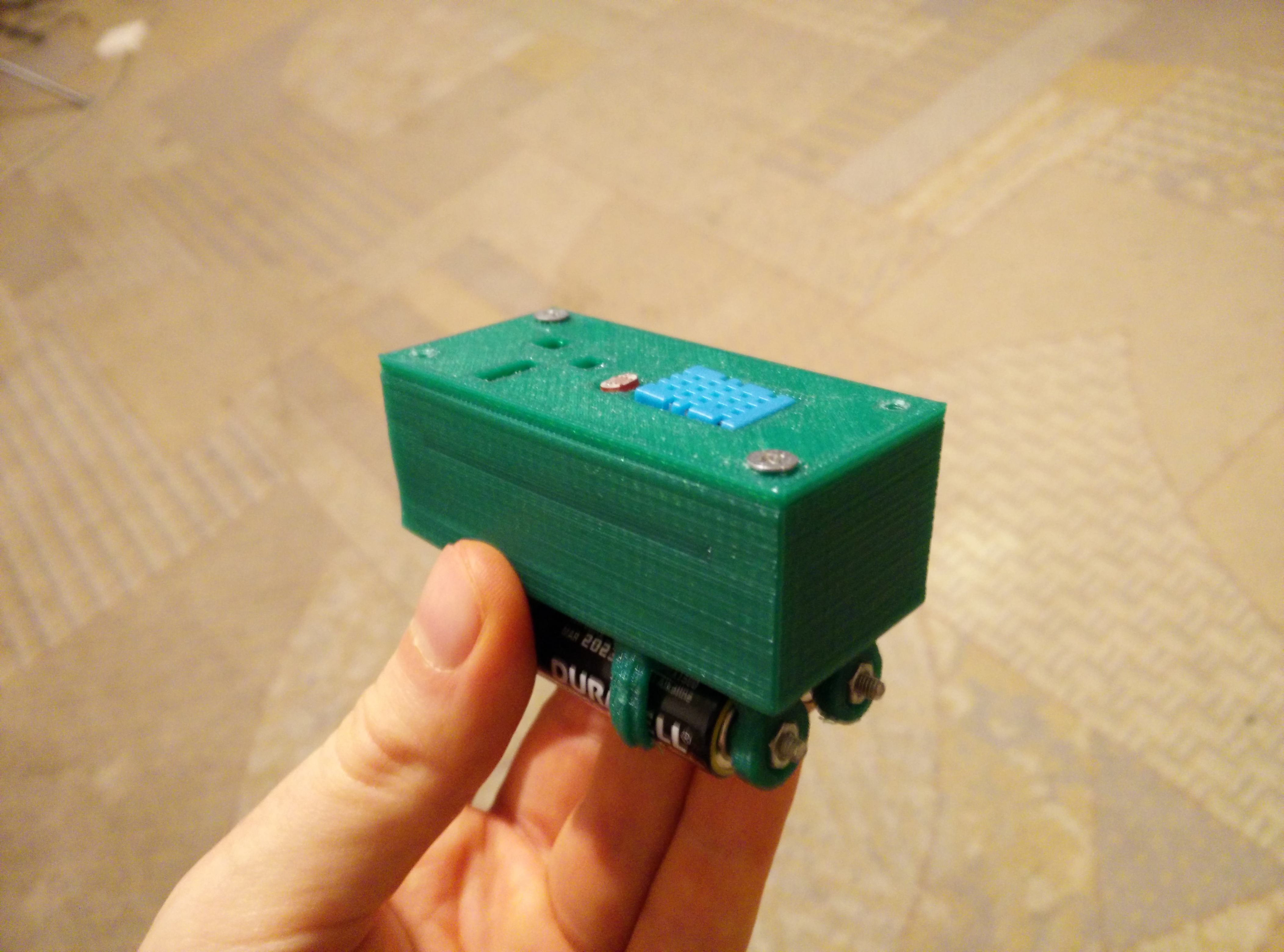 Прожило от двух дешевых батареек около 22 дней. Батарейки высадило до 0.8В каждую, при этом ESP'шка продолжала работать, а вот DHT-11 уже не запускался (я, честно говоря, долго думал что он просто сдох). В планах замена на DHT-22 и добавление барометрического сенсора.