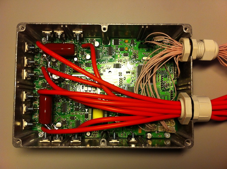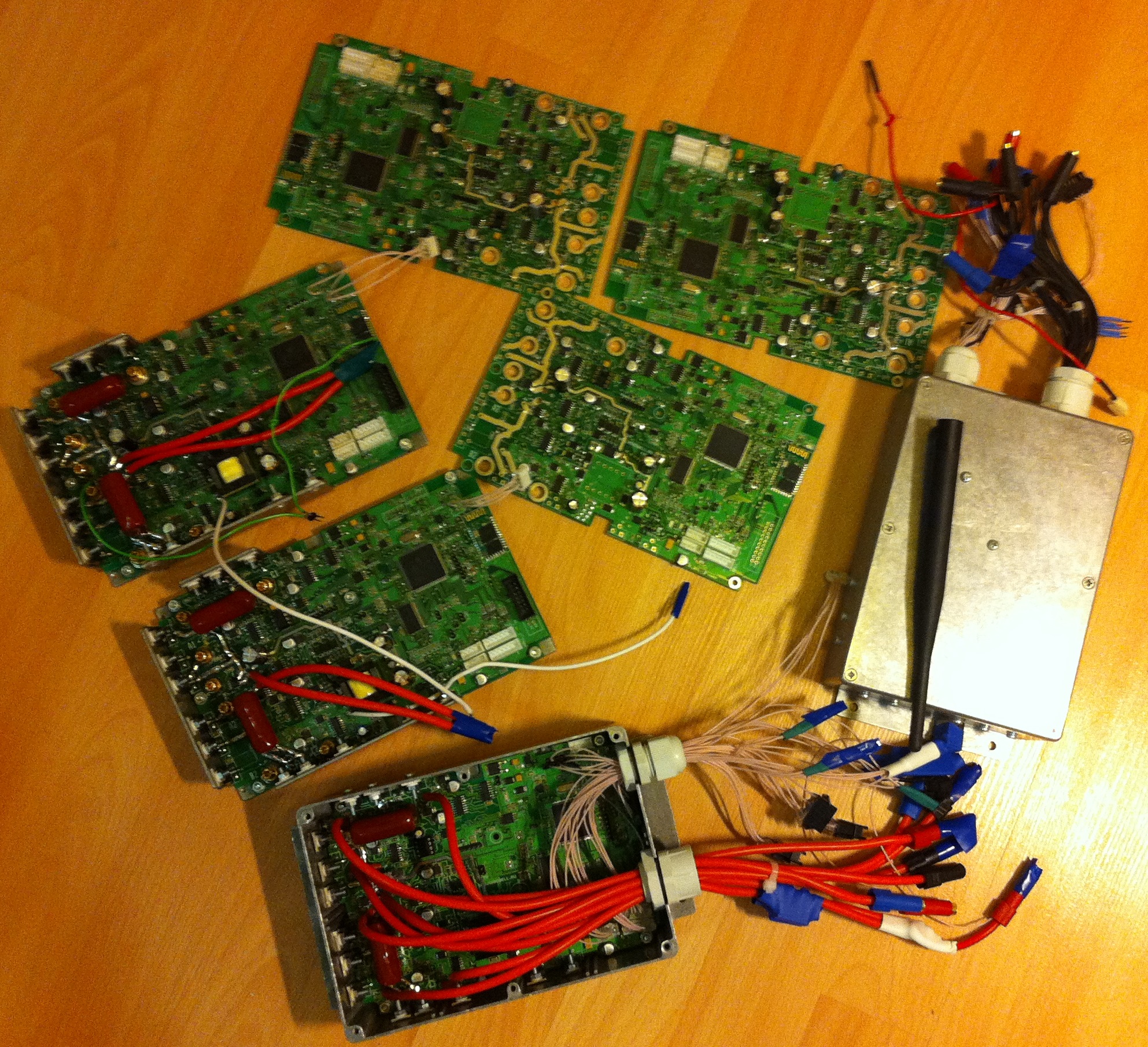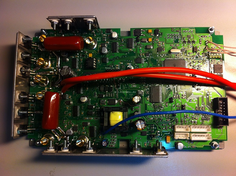 Из него выходят девять силовых проводов: по три на каждый двигатель, один питание -, два питание + (они далее через припаянные предохранители сводятся в один).