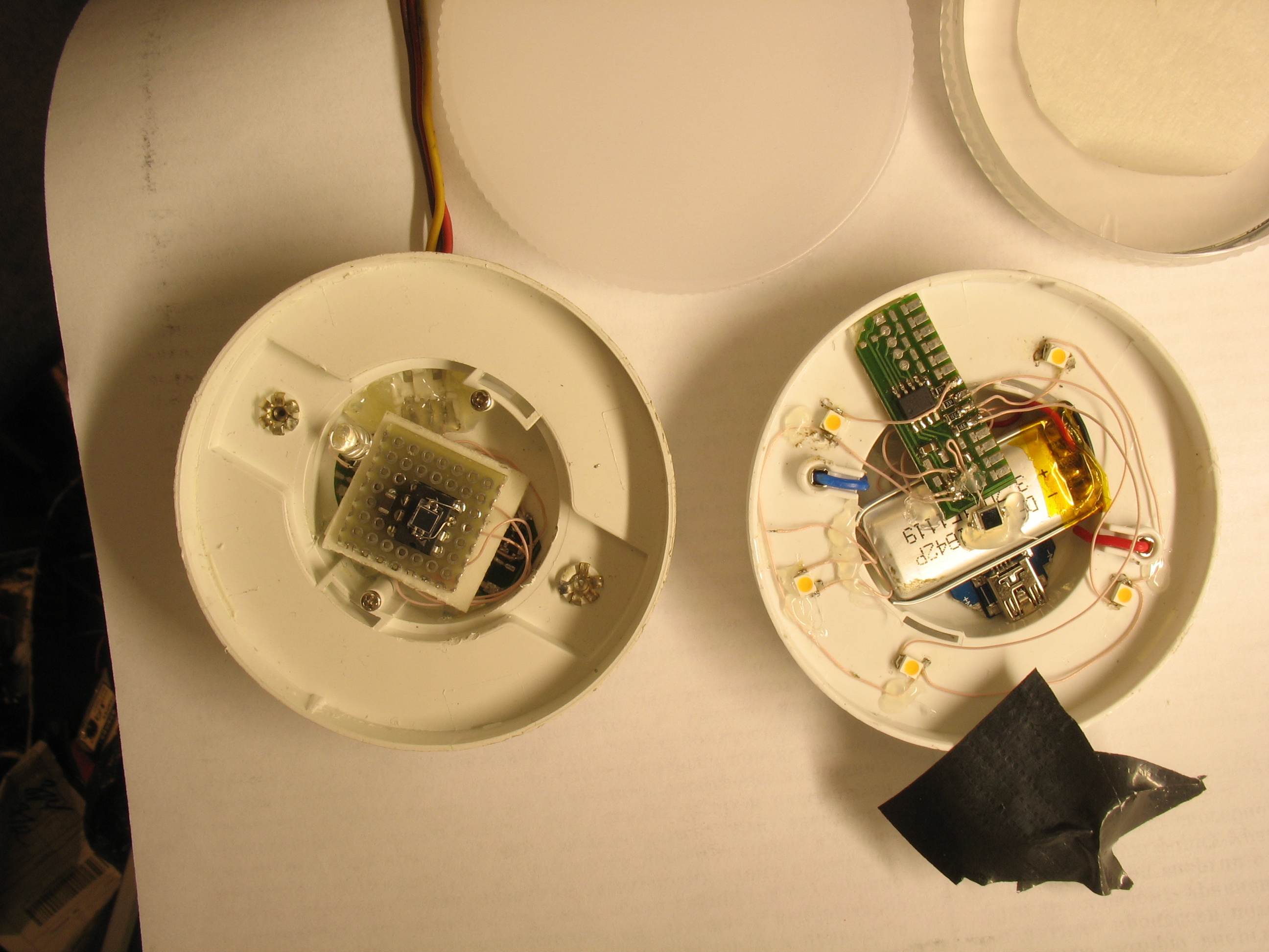 , метки должны были срабатывать только при попадании пятна лазера на корпус метки. Но жизнь оказалась сложнее, и метки срабатывали от отражения луча от потолка и стен. Мягко говоря, метки срабатывали в комнате 3х6 метров в любом положении. Если посмотреть на правую метку, то можно увидеть 2 слоя черного 2-х стороннего скотча на фотодиоде. И вот только в таком состоянии, метка срабатывает при попадании лазера на матовое стекло метки. 2 слоя черного скотча, Карл!. Без оптики, Карл! Лазер красный, Карл! Не инфракрасный, чтоб не сказали что черный скотч прозрачен для инфракрасного спектра. При мощности лазера около 0.5 мВт. Карл!