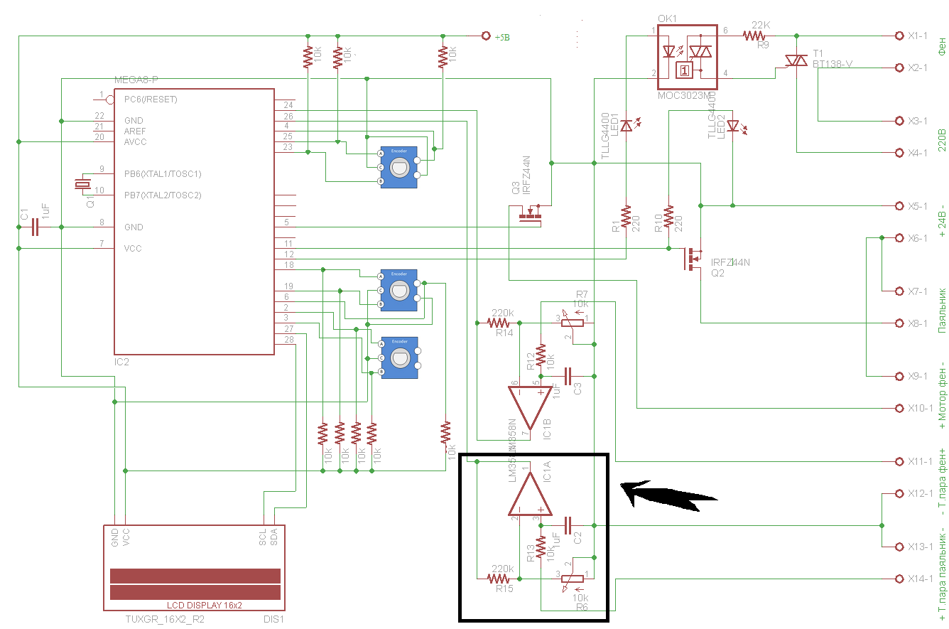 . Да и вообще вся схема, которую я нашел напоминает простой делитель напряжения, в который непонятно для чего засунули еще и операционный усилитель с переменным резистором, который если крутить ничего вообще не меняется.