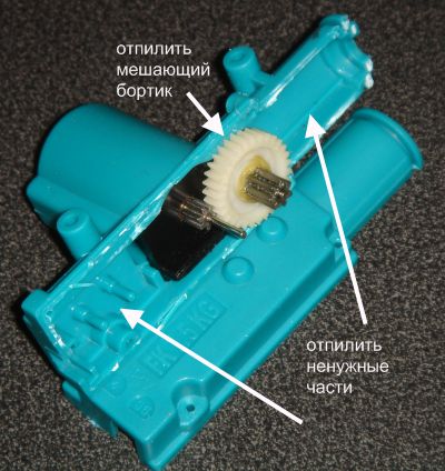 Осторожно: хорошо склеенная прочная пластмасса - легко пораниться, вскрывая и обрабатывая корпус. Обязательно одевайте очки, чтобы избежать попадания в глаза отскакивающих кусков пластмассы!Бывают модели с 2мя и 5ю проводами. Во втором случае внутри добавлен микровыключатель для организации центрального замка. Шестерни подошли по модулю к принтерным от струйников эпсон (может и к другим подходят).