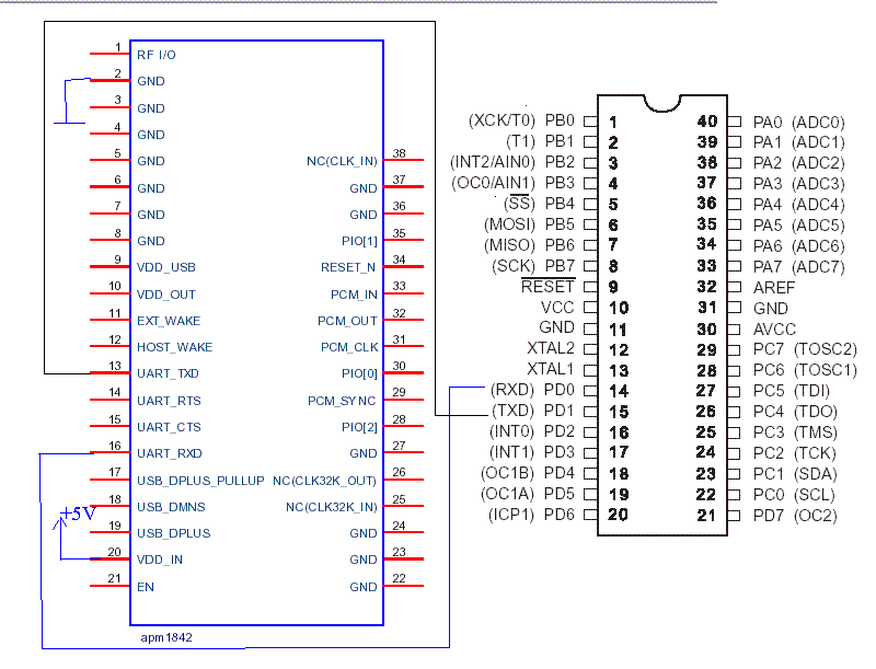 Насчет соединения я вроде немног осообразил, только вот в этой теме viewtopic.php?f=10&t=3379 обсуждались какие-то хитрые заморочки с модулем блютуз. Кажется там для уверенного приема замыкали какие-то выводы модуля.