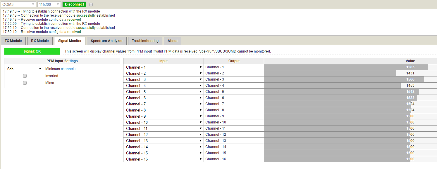 Так и не понял - эти модули могут работать по юарт, параллельно отправляя(принимая) ппм сигнал? Или нужно чередовать режимы?