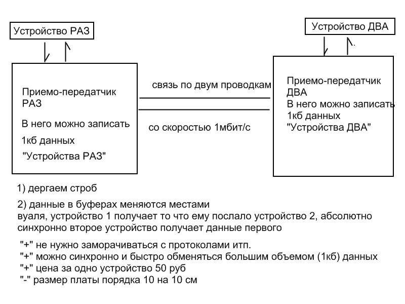 кто из вас знает как за 10 тактов контроллера обменяться 1кб инфы между двумя контроллерами/устройствами, не заморачиваясь с протоколами? :)
