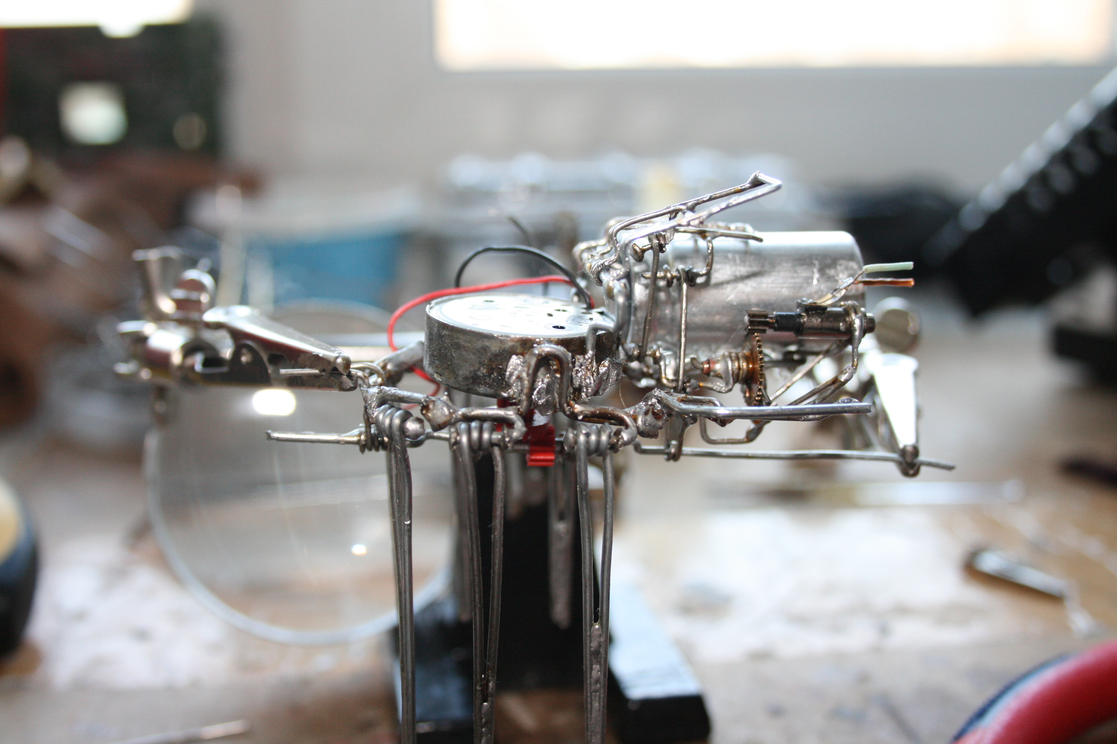 . Смастерил сие чудо по кличке «Дрыня». Хотел конечно попасть суда "Павуки (и не только) из разогнутых скрепок и прочего хлама", но он ходить не умеет и состоит только на 50% из крепок и больше подходит на BEAM робот. Если переедет в другую тему то я не против
