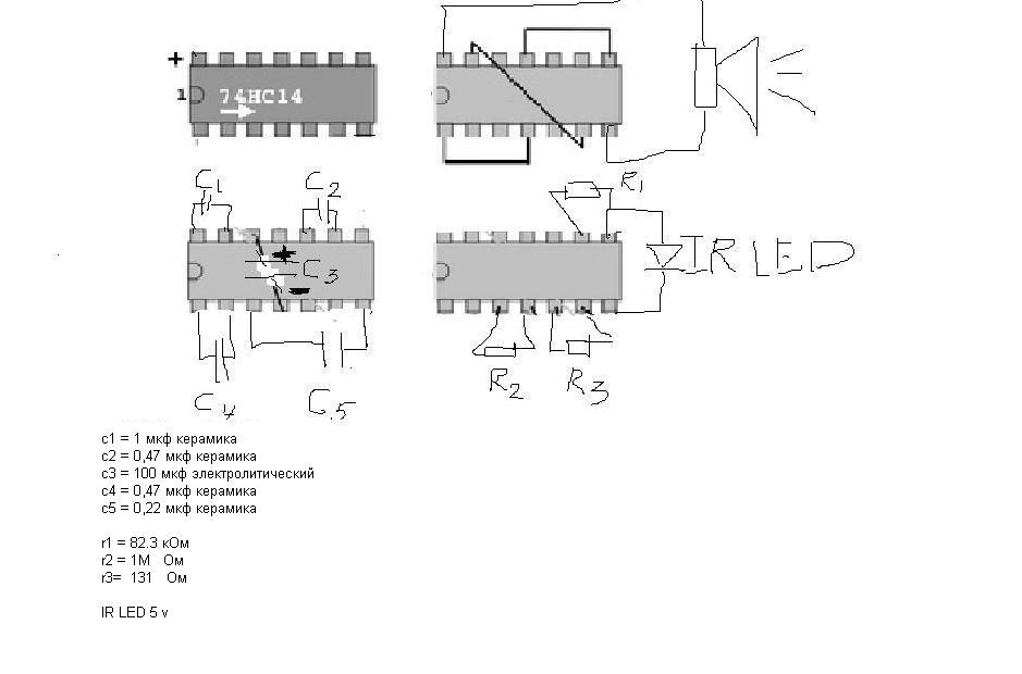 и при помощи двух подстроечных резисторов, можно менять частоту звука. Еще я приделал в носовой части выключатель , а то сверчки те еще гады при продолжительной прослушки можно и прихлопнуть невзначай