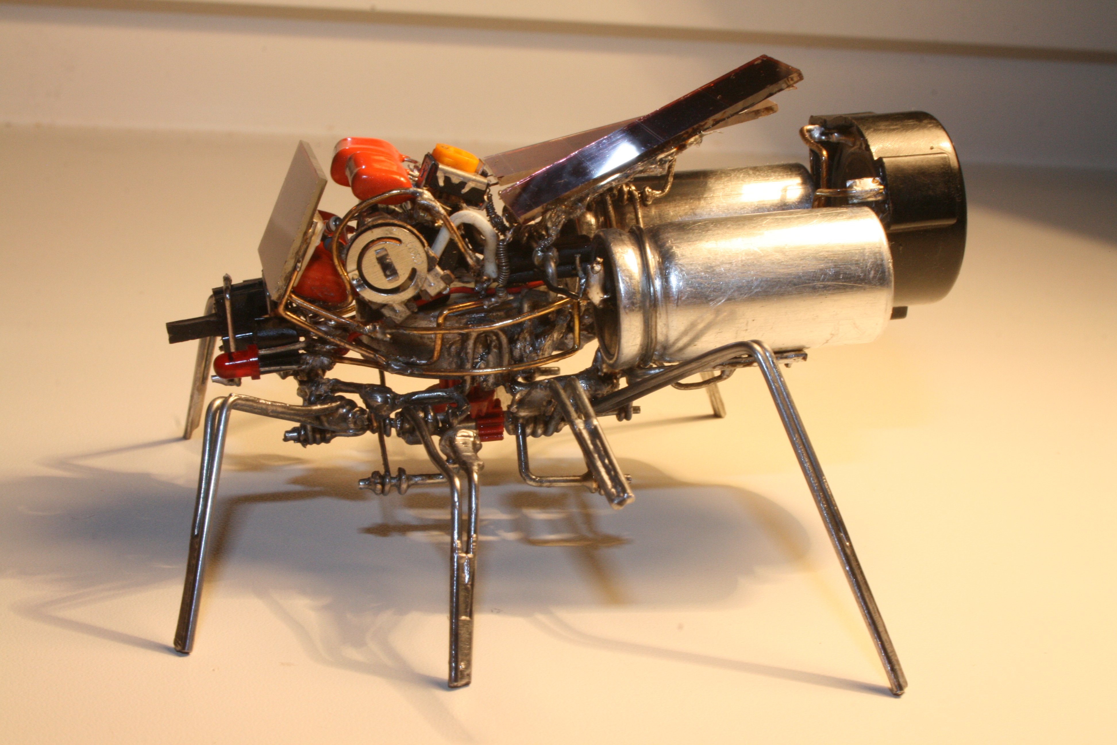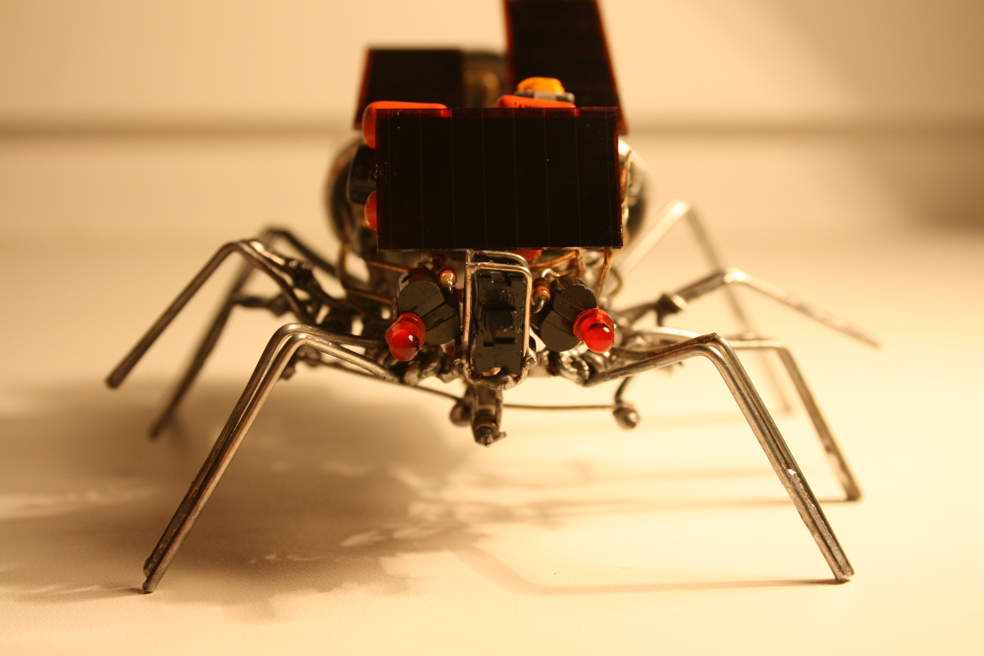 . А вот почему мы не озвучиваем пауков - могу ответить за себя. Мне интересна чисто кинематика и внешний вид. В процессе создания интересен сам процесс. Закончил, сделал фото-видео отчет - и на полку его. Придумывать нового или копировать имеющегося с последующим улучшением. Паук на фотоэлементах - это круто. А моторчики есть и меньше и мощнее, со встроенными редукторами и маложрущие.