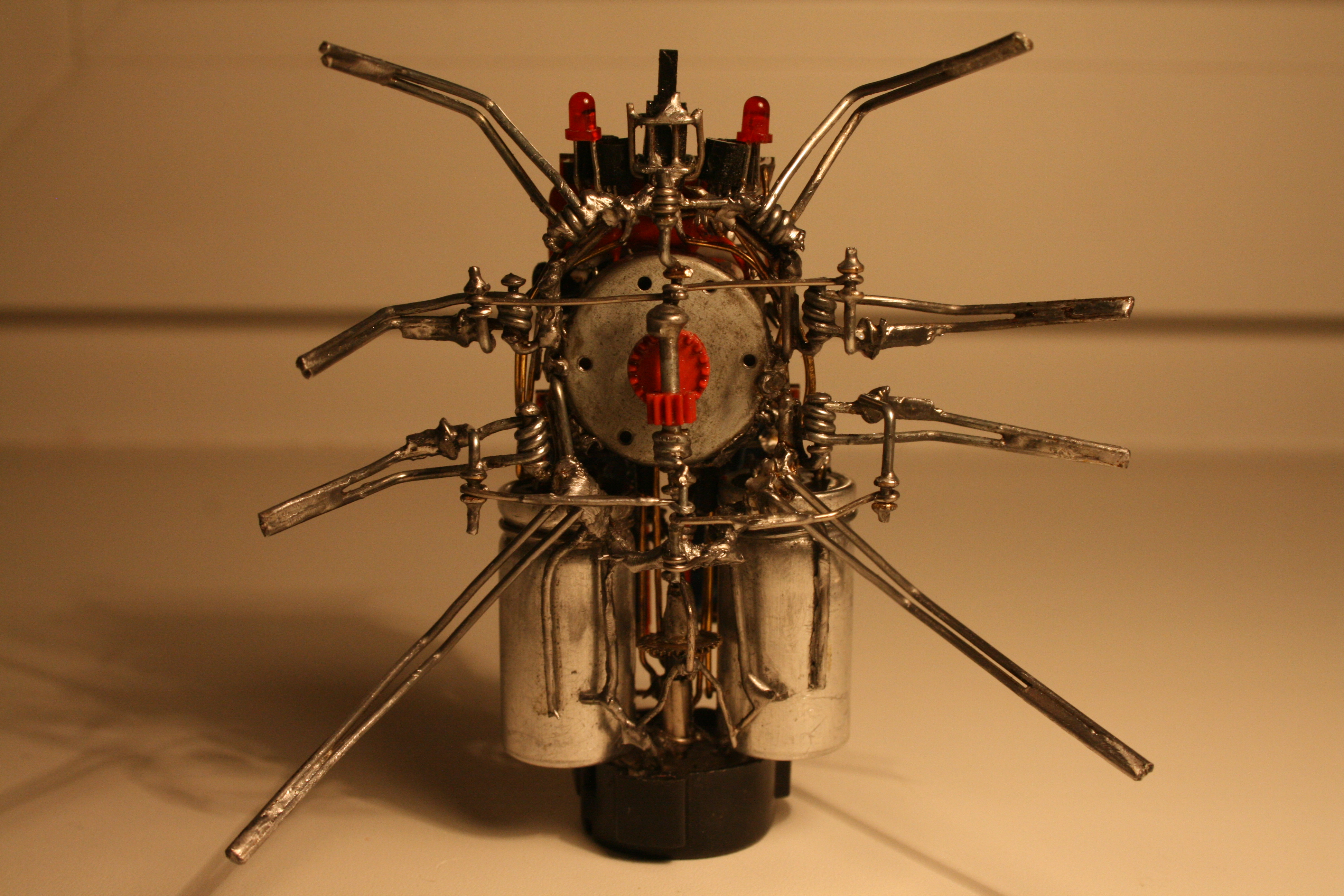 . Смастерил сие чудо по кличке «Дрыня». Хотел конечно попасть суда "Павуки (и не только) из разогнутых скрепок и прочего хлама", но он ходить не умеет и состоит только на 50% из крепок и больше подходит на BEAM робот. Если переедет в другую тему то я не против