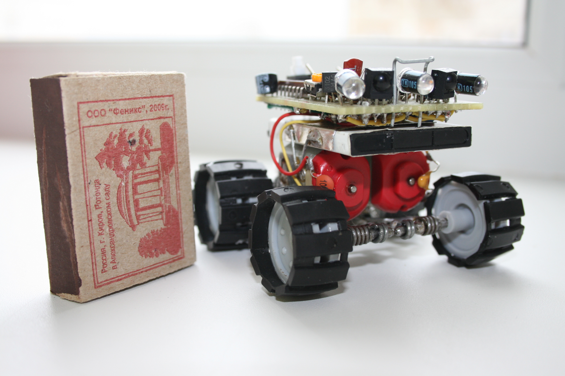 Я хотел сделать на гусеничной основе, но как показала практика маленькие гусеницы не так-то просто сделать, а покупать разные наборы жабка давит
