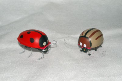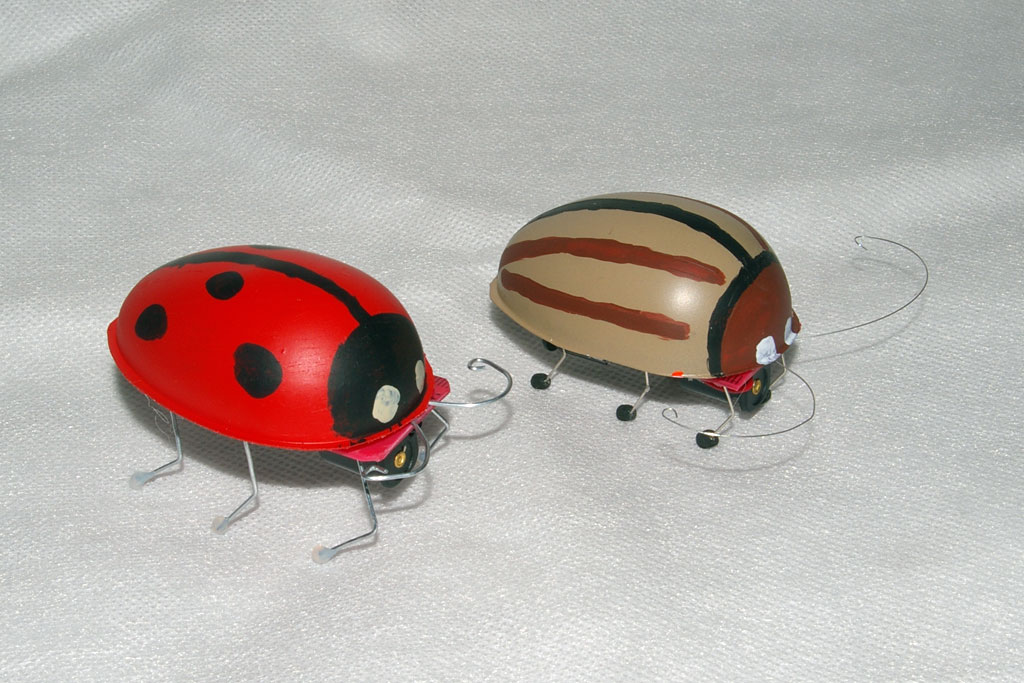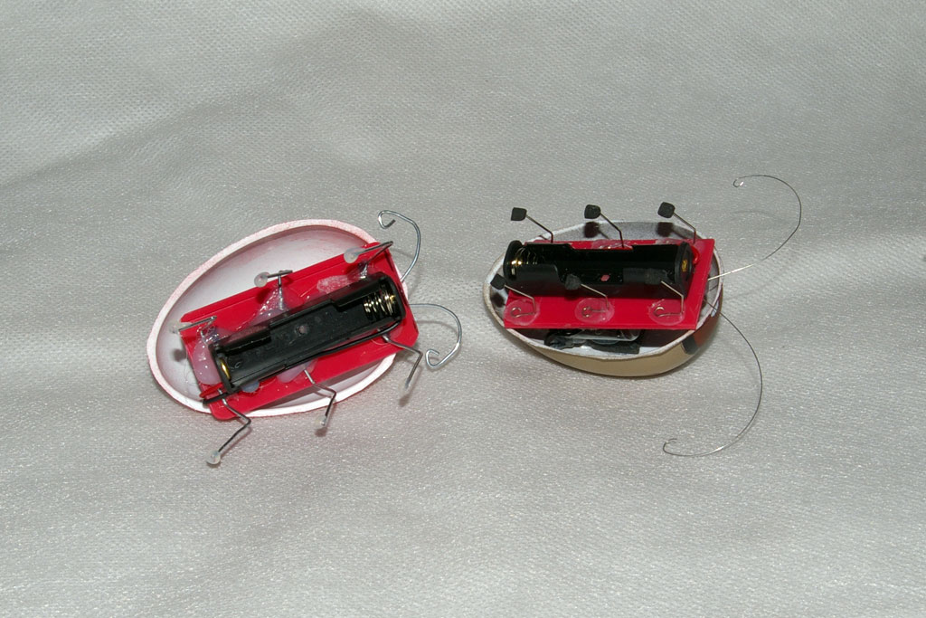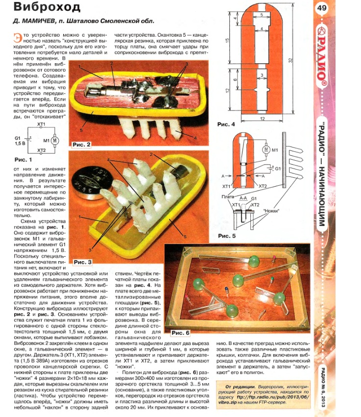 У виброхода щетинки должны быть направлены назад, против хода движения. Когда эксцентрик вращается, то робот начинает прыгать за эксцентриком, центробежная сила его тянет, если по простому. Когда робот тянется вверх - давление на щетинки ослабевает, и они выпрямляются и становятся на шажок вперед. Потом робот идет вниз и чуток перемещается. Если робот крутится на месте - значит либо его щетина не идентична (упругость, изначальный загиб, жесткость), либо (в случае двух моторов) неидентичны параметры моторов/эксцентриков. Очень трудно заставить виброход ехать вперед. Щетина - ненадежные ноги.