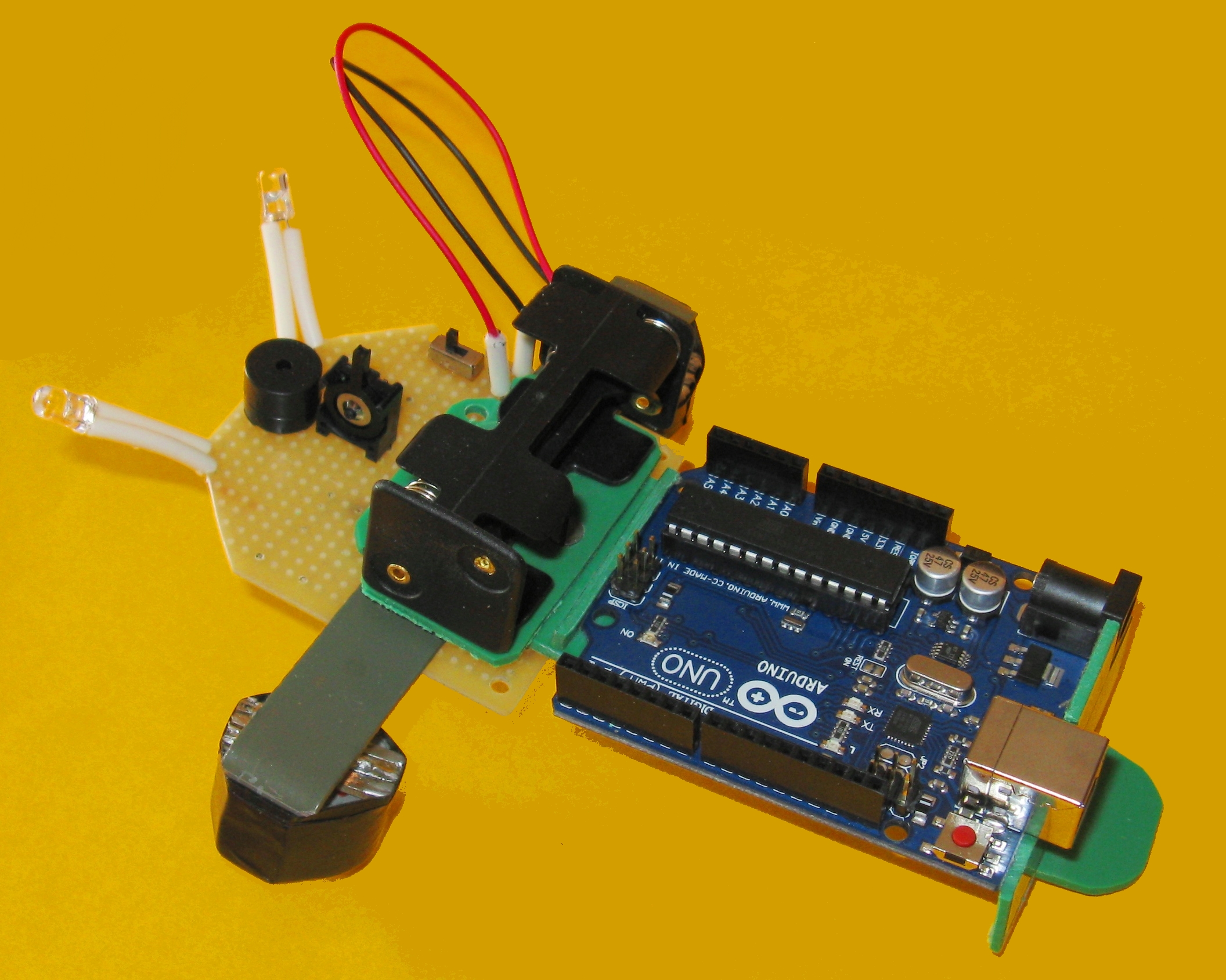 Решил попрактиковаться в программировании на БЕАМчиках...Попробую такой вариант "каркаса" - два мотора от DVD-привода, два светодиода, выключатель, зуммер, спаренная "рычажная кнопка", ардуино уно и кассета для 4 "мизинчиковых" батареек, паячная макетка (без паяльника очень грустно)...