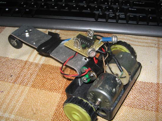 А что если безмозглика сделать не двух-, а четырехглазовым? (Ну и что, что природа возмутиться). Зенки в вершинах квадрата понатыкать. Тогды две зенки для коррекции направления на источник (чтоб равномерно засвечивались), а две другие для остановки под источником при равномерной засветке. :shock: