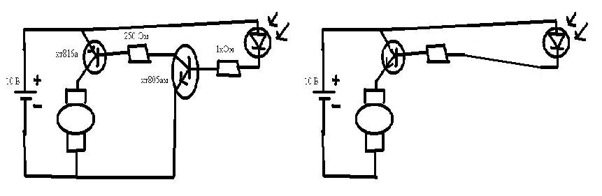 что-то сомневаюсь что транзистор в правой схеме будет открываться, помоделируй.