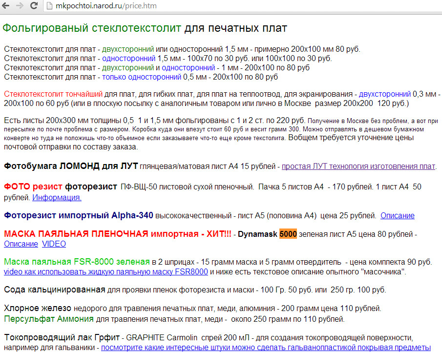 Я советую пленочные материалы - маска dynomask 5000 и фоторезист импортный Alpha и не воняет!