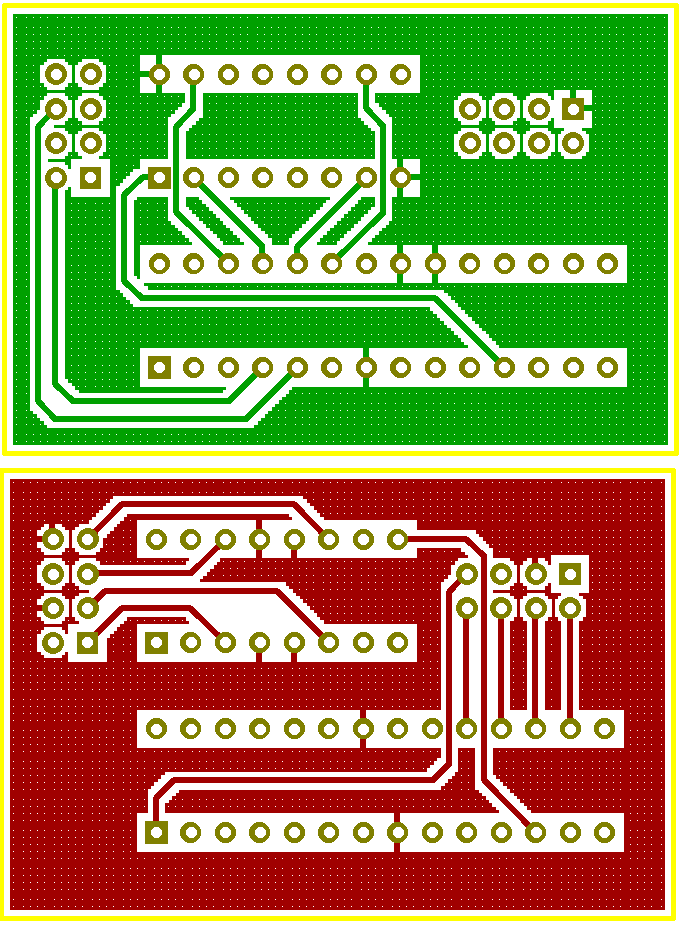 Кстати в вариант с переходными отверстиями добавил заливку (с одной GND с другой VCC) - получилось близко к первому варианту, не так "по пионерски"