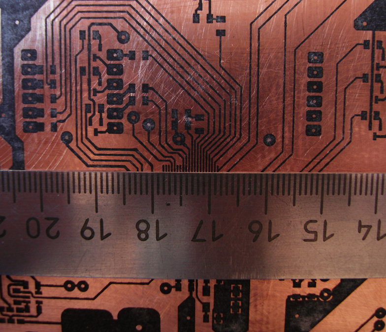 speian.aurel писал(а):Недавно делал плату под микроконтроллер с шагом 0,5 мм. Как обычно, удалял тонер лезвием от канцелярского ножа. Ничего не отлетело.