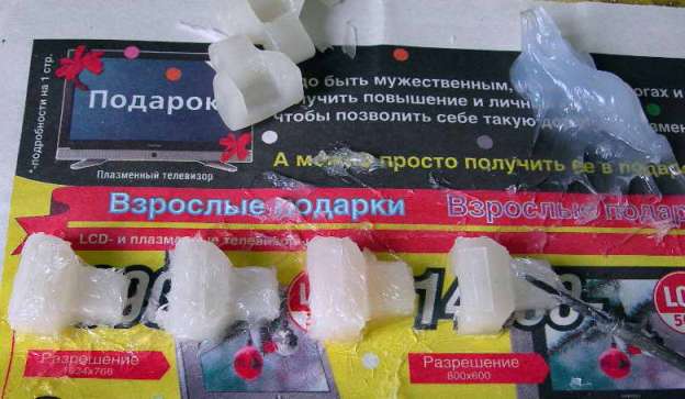 далее берём нашу хрень из парафина которую мы тока что вырезали