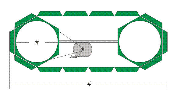 Ведущие колеса — шестигранные призмы. Проще всего их можно изготовить из пенопласта или картона. Для прочности колес их торцовые поверхности следует оклеить полистиролом или фанерой. Чтобы гусеница посередине не провисала, необходимо установить поддерживающий блок. Его лучше всего вырезать из пенопласта или, как и ведущие колеса, склеить из картонных заготовок. Их прочности вполне хватит, чтобы обеспечить гусеницам жесткость, а самому вездеходу дополнительную плавучесть и устойчивость. С обеих сторон гусеницы следует прикрыть фальшбортами из фанеры, картона или полистирола так, как показано на рисунке. Их необходимо приклеить только к поддерживающим блокам. Проследите, чтобы оси ведущих колес, пропущенные сквозь отверстия в фальшбортах, вращались без трения.
