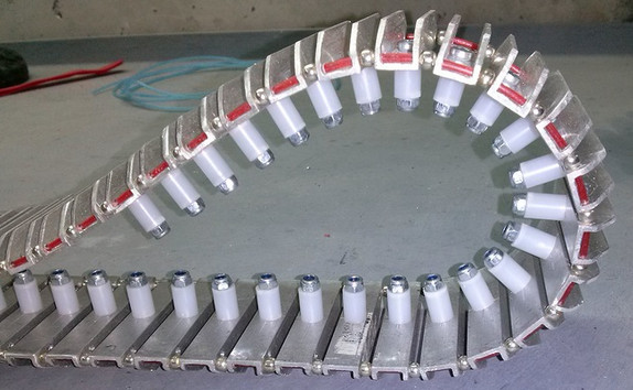 Самый лучший вариант это конечно либо оливать из алюминия или из сплава розе с армированием. Люди говорят что при должной сноровке гусеница получается почти как настоящая, прочная и даже звук при движении издает характерный. А можно из ПВХ или из жидкой резины какой нибудь отливать, но это для маленьких роботов где нагрузка небольшая.