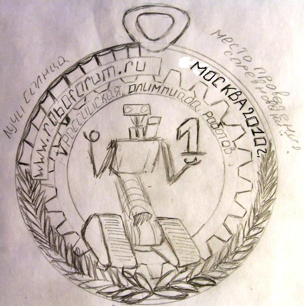 Ну какие тогда проблемы, место проведения и дату можно переместить на обратную сторону медали, а вместо надписи наристовать такие же лучи как и на левой стороне. Лавровый винок только у меня не очень хорошо получился, его то же можно заменить на какой нибудь узор, кому чего больше нравится.