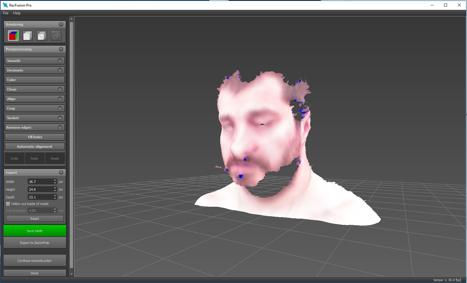 - ReconstructMe (свободное, даже работает, только не понял в каких размерностях модель получается - дюймы?) с этим приложением нужно разбираться