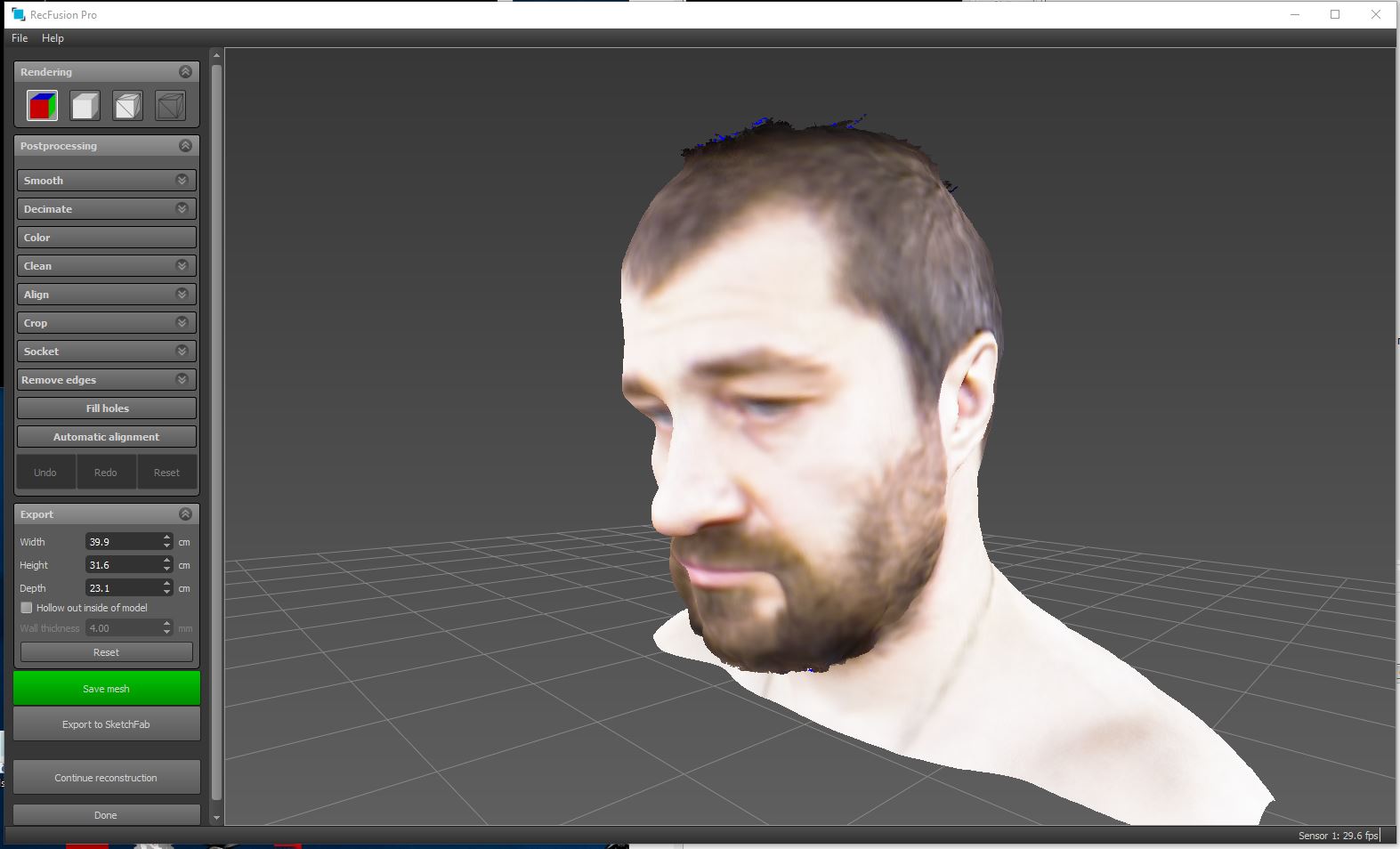 - ReconstructMe (свободное, даже работает, только не понял в каких размерностях модель получается - дюймы?) с этим приложением нужно разбираться