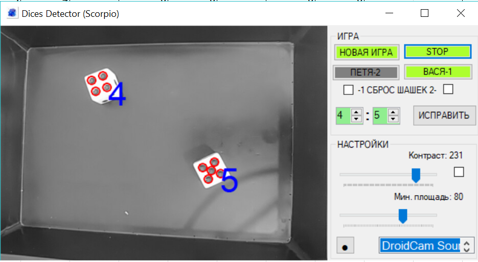 Во- вторых, когда кубики плотно прикасаются углами, может получиться, что метод расстояний ошибается. Но в 90% случаев определяет правильно, а для 10 оставшихся предусмотрена быстрая ручная корректировка статистики последнего хода.