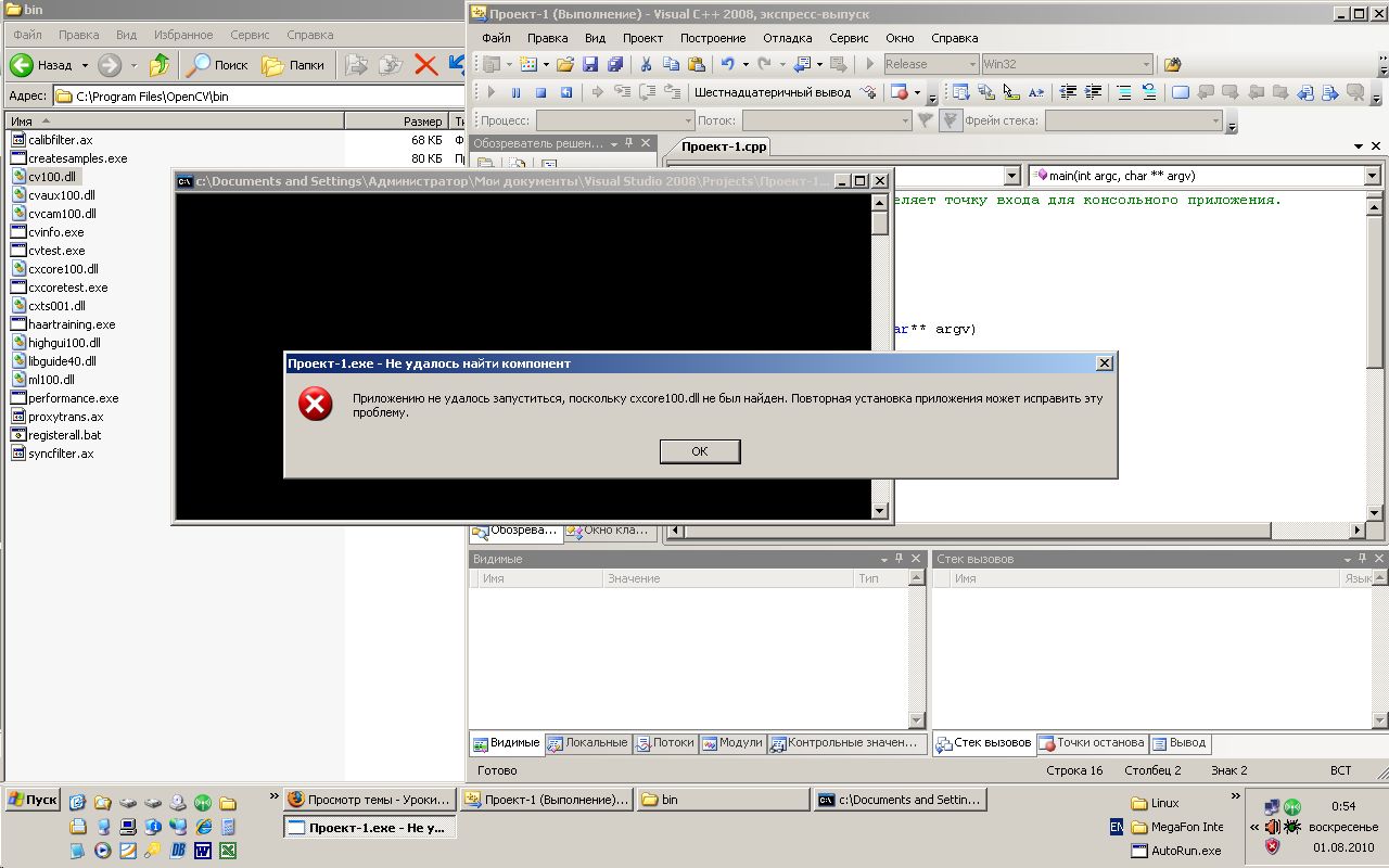 H:\project c++\consol opencv1pr\Debug\consol opencv1pr.exe : fatal error LNK1120: 6 unresolved externals