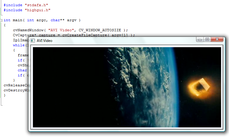 cvReleaseCapture( &capture ); Так или иначе - цикл преравался (видео закончилось или была нажата клавиша Esc), тогда этой функцией мы высвобождаем память связанную со структурой CvCapture. Вот и всё! Немного позже я расскажу о том, как добавить в наше приложение slidebar, чтобы можно было перематывать видео!