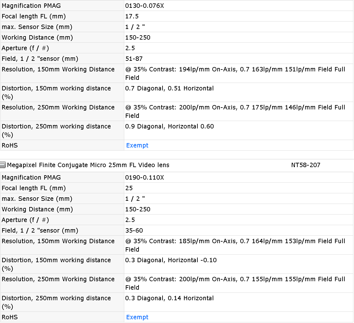 не видно как измерить коэффициенты F3, F5... Вот параметры двух объективов одной серии с фокусным расстоянием 17.5 мм и 25 мм(раньше я их уже приводил)