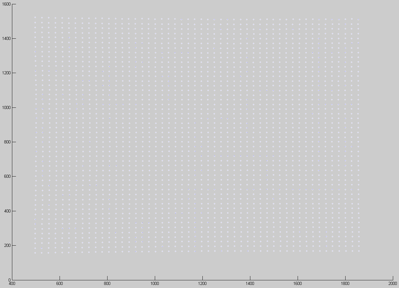 Значит дело за тем чтобы найти файл с изображением сетки(точек) и отпечатать его размером 20х20 мм? Но принтер даст 20+/- сколько мм? Скажем точки через миллиметр, 400 точек. Я бы сам сделал такой файл, но у меня такое недоверие к матлабу... видно невооруженным глазом что точки разные по размеру получаются, печать еще добавит искажений... не знаю, попробую. Я бы миллиметровку взял, но тогда специальную программу для нее писать надо, с точками вроде проще.