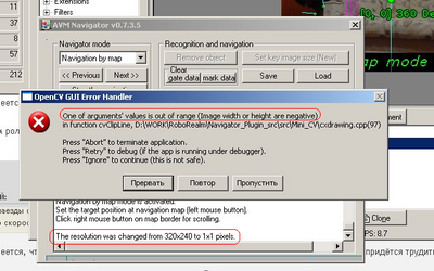 Периодически ловлю такую ошибку. Такое ощущение, что при работе через WiFi пропускается кадр. Без включенного навигатора такое не вылетает. Можно сделать так, чтобы пропуск кадра не ронял RoboRealm?Причем такое ощущение, что с новой версией навигатора ошибка стала появляться в 3-5 раз чаще