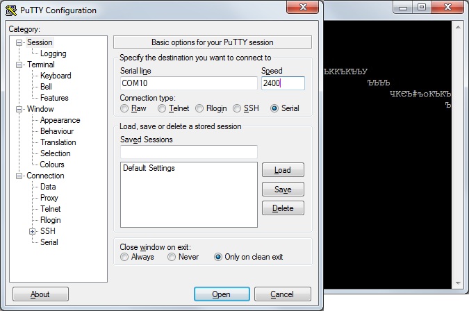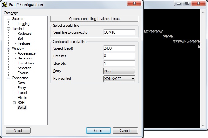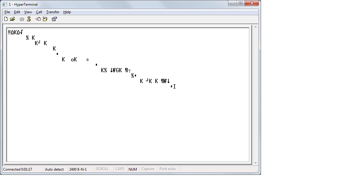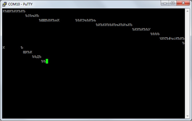Пытаюсь вывести в гипертерминал Print "Start MiniBot" , подключаюсь UART, в терминале вижу следующее: