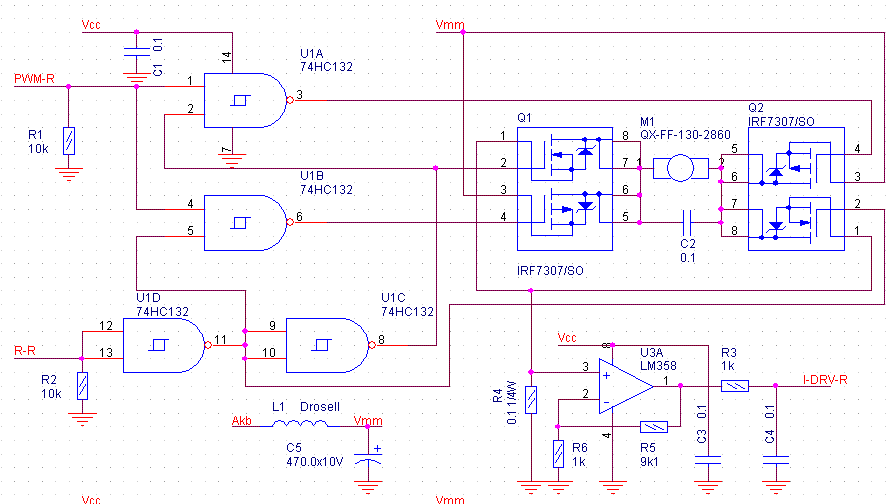 Верхние P-mosfet выбирают направление протекания тока, а нижние N-mosfet осушествляют ШИМ модуляцию - на них тепла больше будет но и N-mosfet-ы получше параметры имеют в паре в SO8.