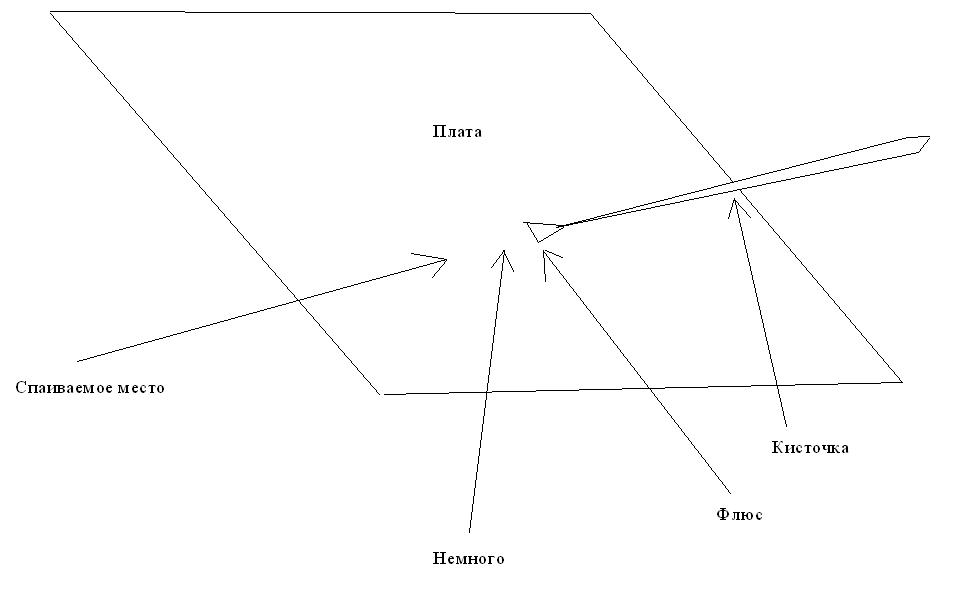 3.Нанести при прмощи кисточки немного флюса на спаиваемое место.
