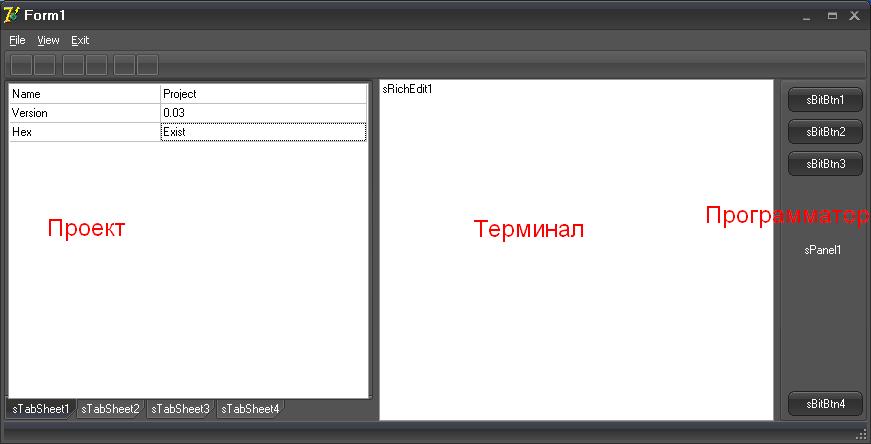 К сожалению в окне дерева слева будет только выбор проектов и связанных с ним вкладок(и проекте, хекс, код и т.д.), посокльку для разных проектов ни терминал, ни программатор не изменяется (оно и понятно, ибо программатор и терминал привязаны к конкретному компу, а проект - к файлу).