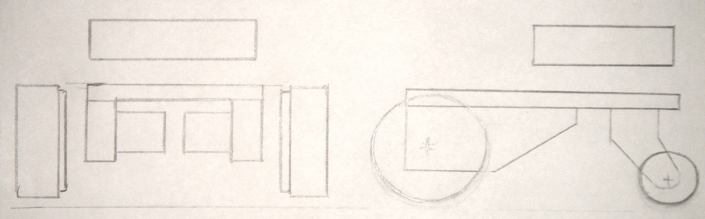 кладем сверху лист бумаги и фантазируем, не забываем про эргономику, панель управления, ручку для переноски и сенсоры - датчики линии спереди, подсветку TSOP-ов по углам, датчики стены сбоков и возможность установить сервопривод с шарпом сверху