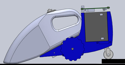 а если впереди, то можно пылесос крепить не жестко, а чтобы он как-бы лежал на раме.
