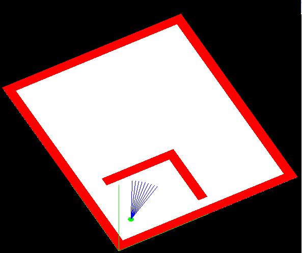 2. Робот представляется окружностью с исходящими из него векторами(дальнометрами), каждый из которых обладает дальностью измерения. Угол обзора дальнометров, их количество и дальность задается программно.