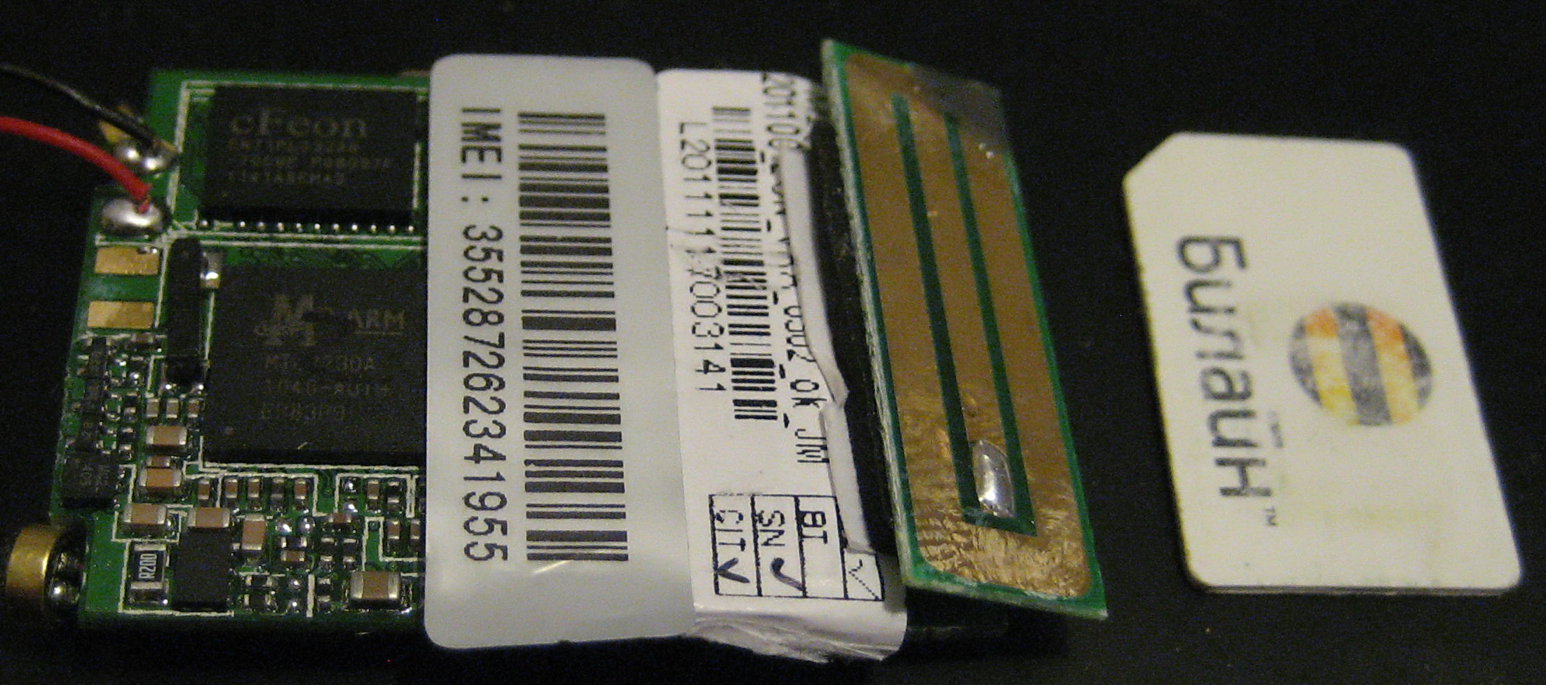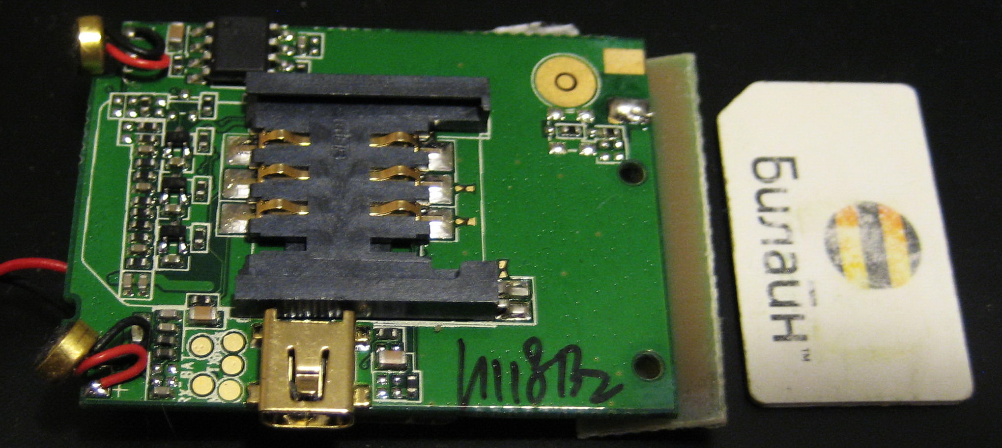 на плате распаяна флешка, процессор ARM, крошечный GSM модуль SMD