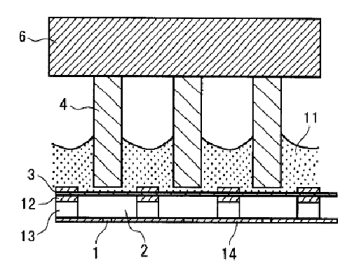 Патент не епсоновский, но по сути все это одно и то же. Для нелюбителей аглицкого языка, рассказываю основные моменты. Кусок пластины из пьезоэлектрика приклеивается в основанию 6, специальной нитевой пилой прямо на этой пластине режется на кучу маленьких одинаковых пластинок 4. Дальше берется пластинка 4 (материал - никель), в которой проделаны узкие сопла 1, на нее кладется пластина 13 (нержавеющая сталь) с прорезаными областями, образующими камеры давления 2. Мембрана 3 герметизирует эти камеры. К ней, с помощью упругого герметика 11 приклеиваются пьезоэлектрические пластины. Направление поляризации в пьезоэлектрических пластинах на данном рисунке - вертикальное. Соответственно, при подаче напряжения они будут удлинняца или укорачиваца, увеличивая или уменьшая давление в камере.