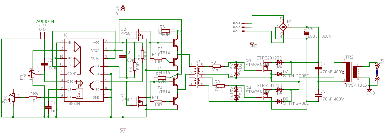 Master почему горят на бп и не горят на акумеме не знаю точно, ток догадываюсь, что ампераж с блока питания нехилый идёт, а эт в подобных схемах ни к чему. я впаивал и irf540 и irfz24 и irfz24, все горели, пока хоть как-то не стал ограничивать ампераж. питание через транз на первичку подавал 12В, так что какой ток бп выдавал, чтоб такие транзы летели остаётся ток догадыватся.